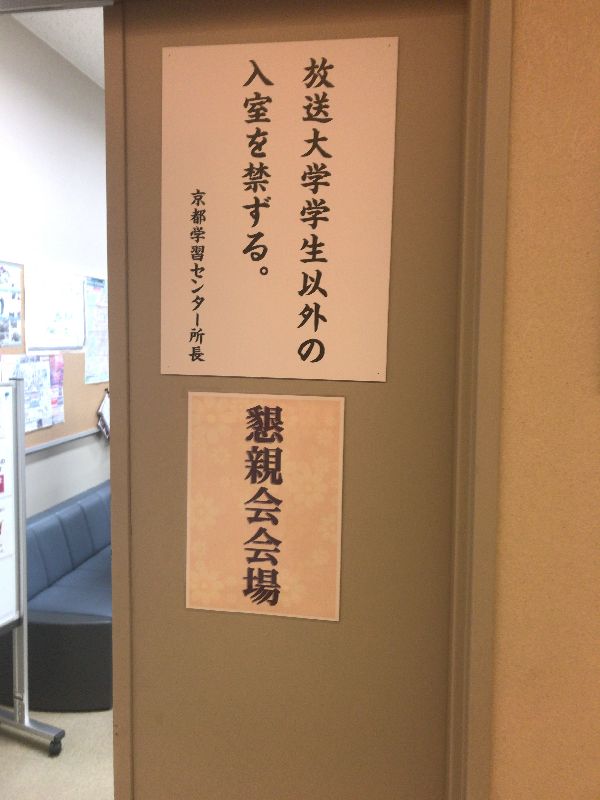 会場となる3階講義室へ向かうと、今回も指定された場所は一番奥の一番後ろの席。学位記授与式では、放送大学がホームページ等で紹介しているコースの序列に従った配席になっているので、自然と環境コースが最後になることは予想していたが、2年前に引き続き京都学習センターの学位記授与のトリを務めることになる。