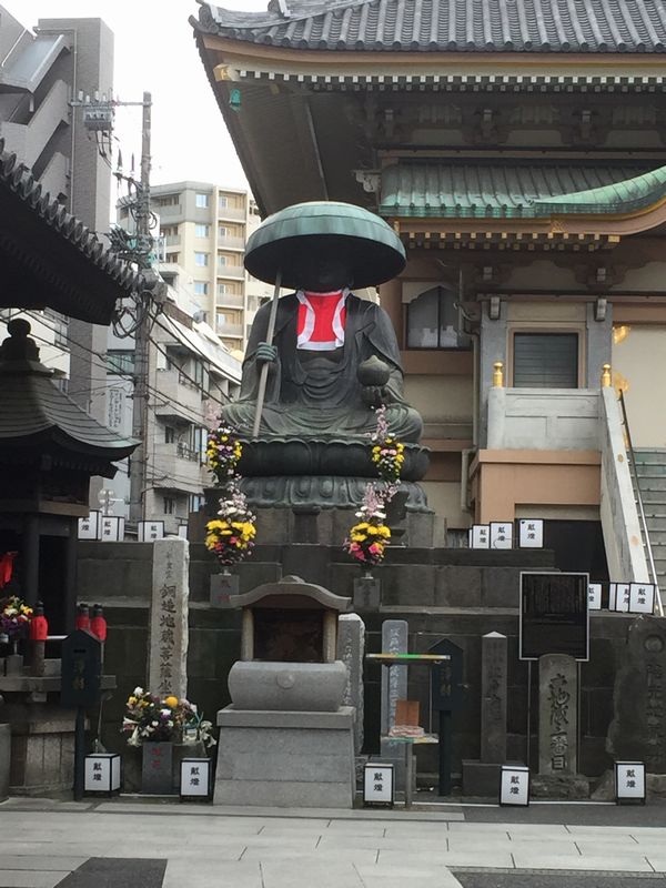 江戸六地蔵尊の一つとして知られる真性寺に立ち寄ったり、巣鴨地蔵通商店街のイメージキャラクターすがもんのおしりを触ったりして時間を潰す。ちなみにご利益は恋愛成就らしい。商店街を5分ほど歩いていくと、右手にとげぬき地蔵と呼ばれる巣鴨のシンボル高岩寺が現れる。しかし、朝の7時代では、門前の屋台は開業準備中で、人影も少ない。本尊は非公開なので地蔵尊を拝観することはできず、代わりに本尊の姿を写した和紙に病気平癒を祈願した。
