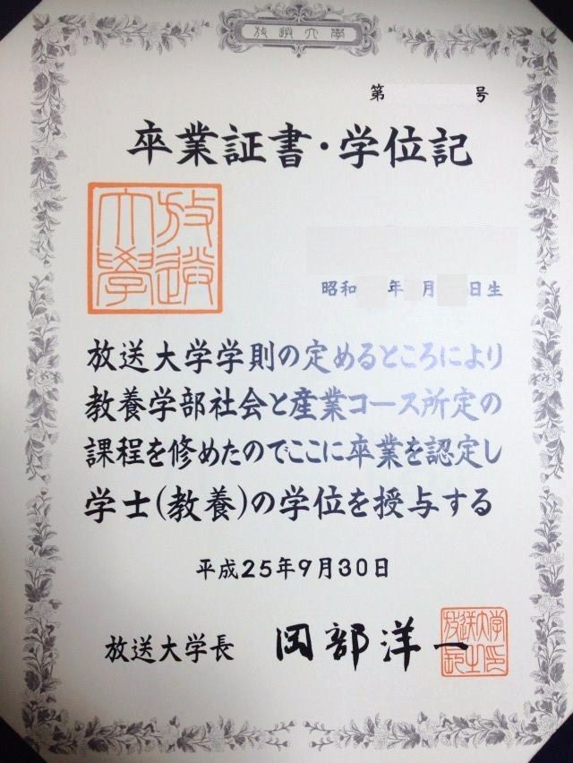 学位記を確認すると日付は9月22日ではなく、9月30日となっていた。8日間のフライングだが、一般的には学位記授与式の日付になると思われるのだが、学習センターごとに開催日が異なるので一律9月30日にしているのであろう。