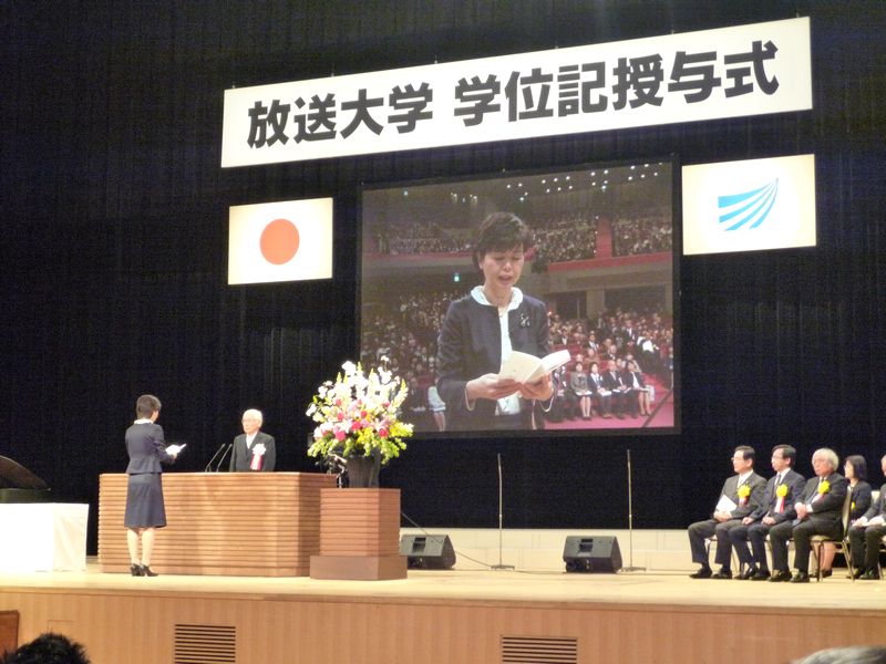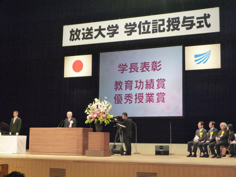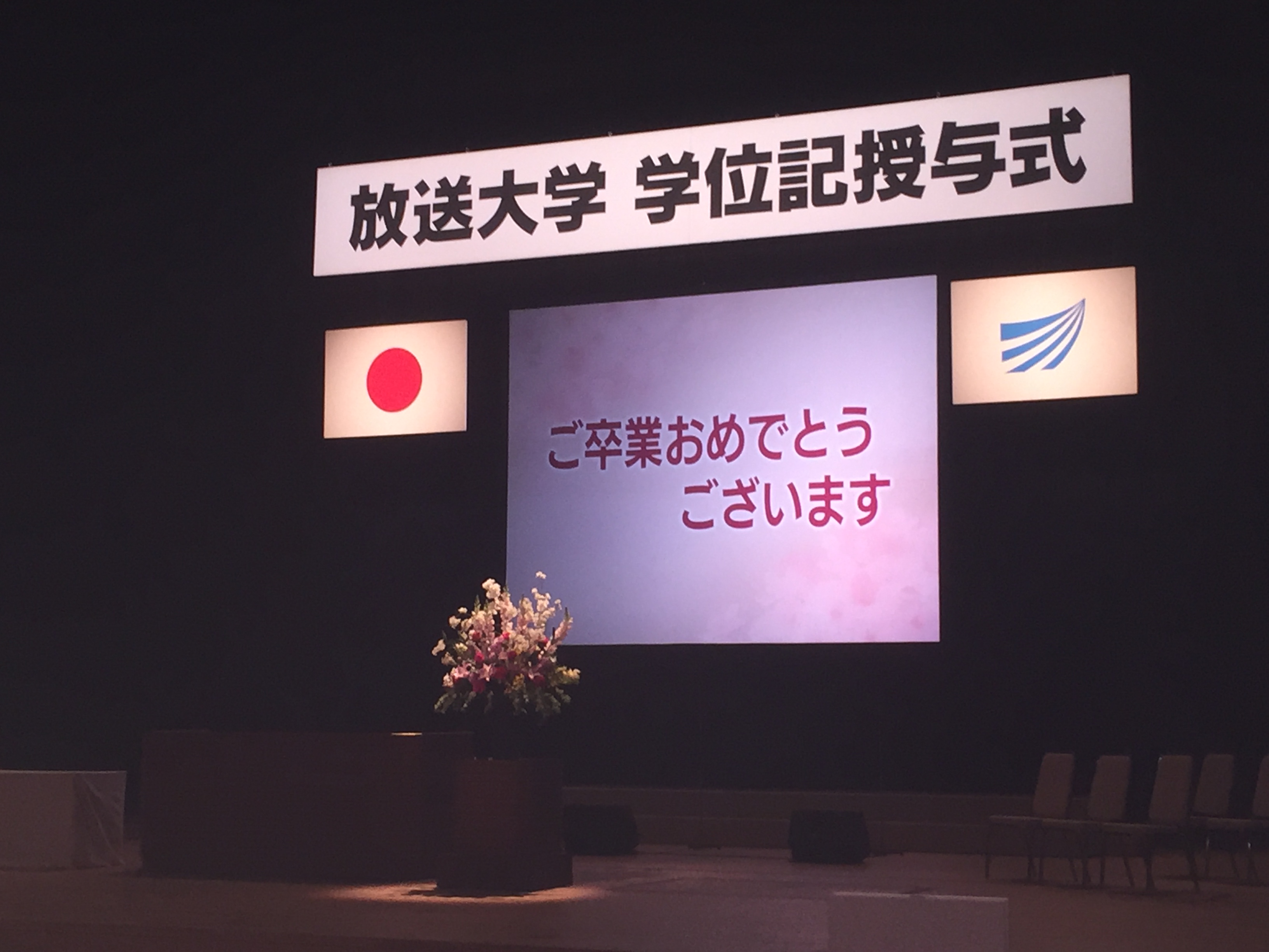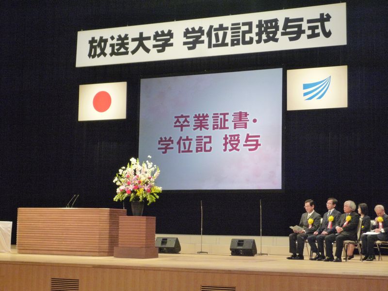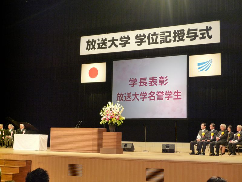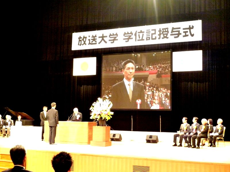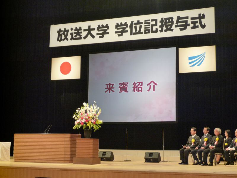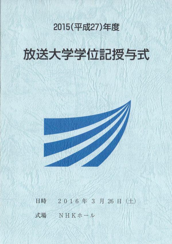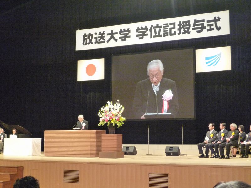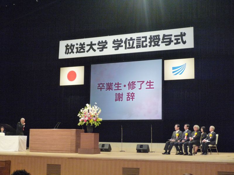 卒業生・修了生謝辞では、1994年に入学したという学生が登場した。1994年と言えば、私が最初の大学に入学した年でもある。22年越しの卒業とは恐れ入るが、実際は翌年に休学。復学したのは2011年とのことで、2011年も私が放送大学に最初に入学した年でもあり、少なからず縁がありそうな経歴の持ち主であった。