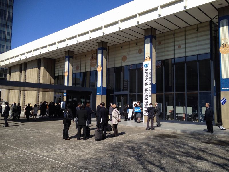 大江戸骨董市で賑わう人々を掻き分けて9時30分頃にNHKホールに到着。人影はまだ少ない。若い人は、「放送大学」という腕章を付けたスタッフで、学生となるとやはり定年を迎えた世代が多いような雰囲気だ。入学当初は、30代で大学生なんて気恥ずかしいと感じたものだが、放送大学ではしばらくの間は若手で通用しそうである。