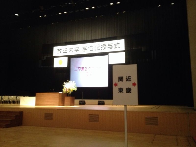卒業生は10時40分までに着席するように事前に指示が出ていたが、すし詰め状態の関東ブロックに対して、近畿ブロックはまだまだ空席が目立っていた。わざわざ学位記授与式のために東京まで足を運ぶ人は少ないのであろう。それでも、北海道や沖縄からも出席する学生と比較したら、物理的な支障は少ないはずである。新幹線を利用すれば日帰りも十分可能なのだ。