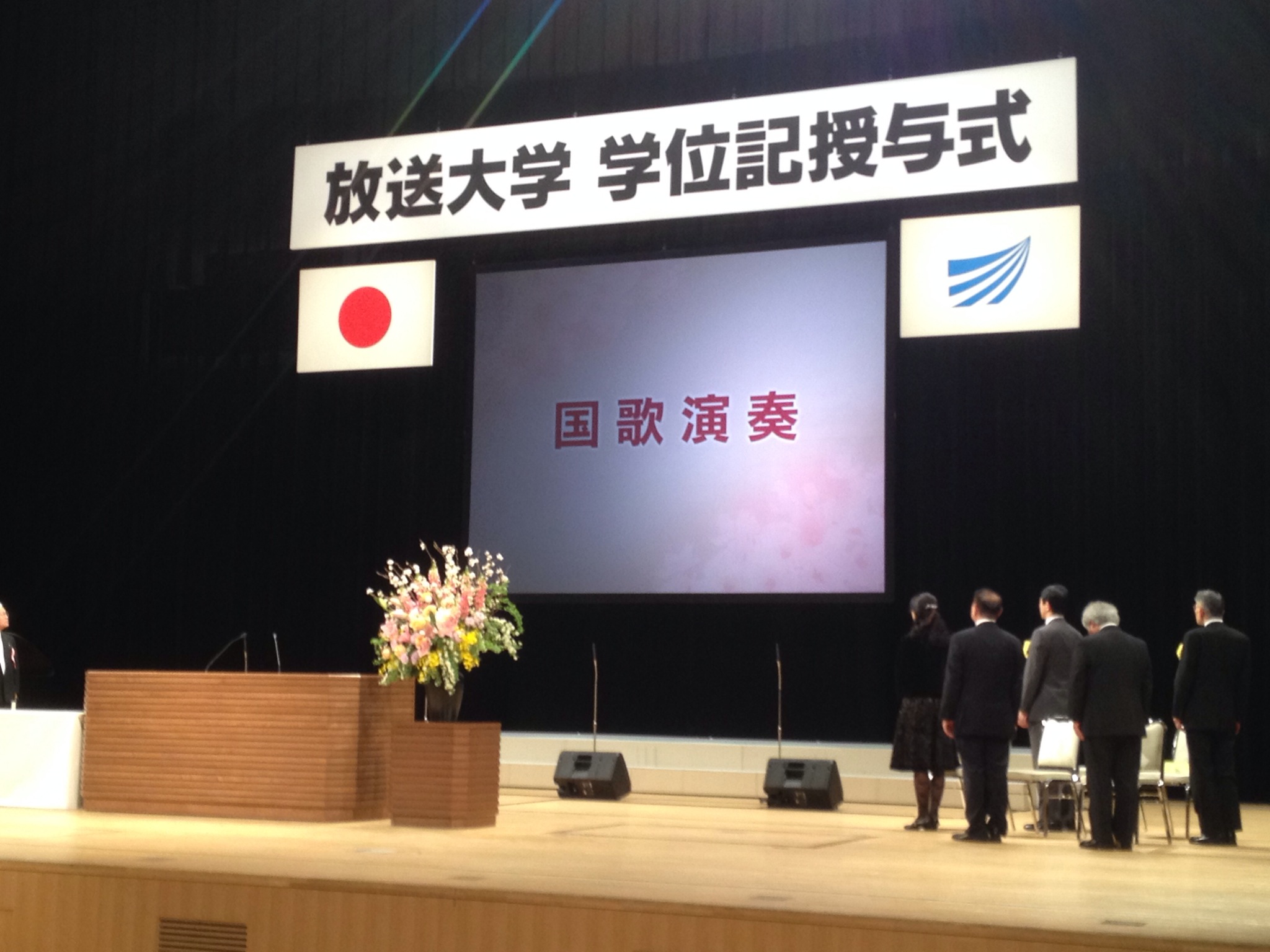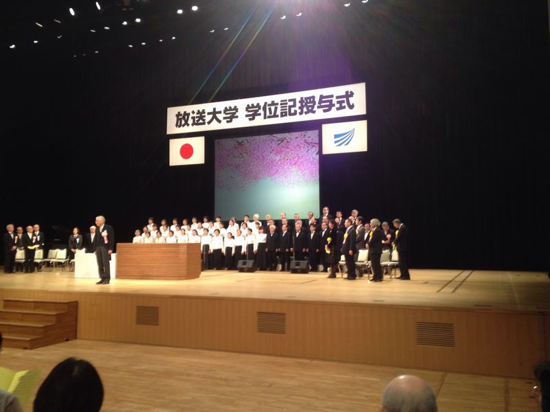 ラストは学歌斉唱。こちらは学歌演奏ではなく学歌斉唱となっている。放送大学神奈川学習センターの合唱団のコーラスに合わせての学歌斉唱を行い、学位授与式は終了した。