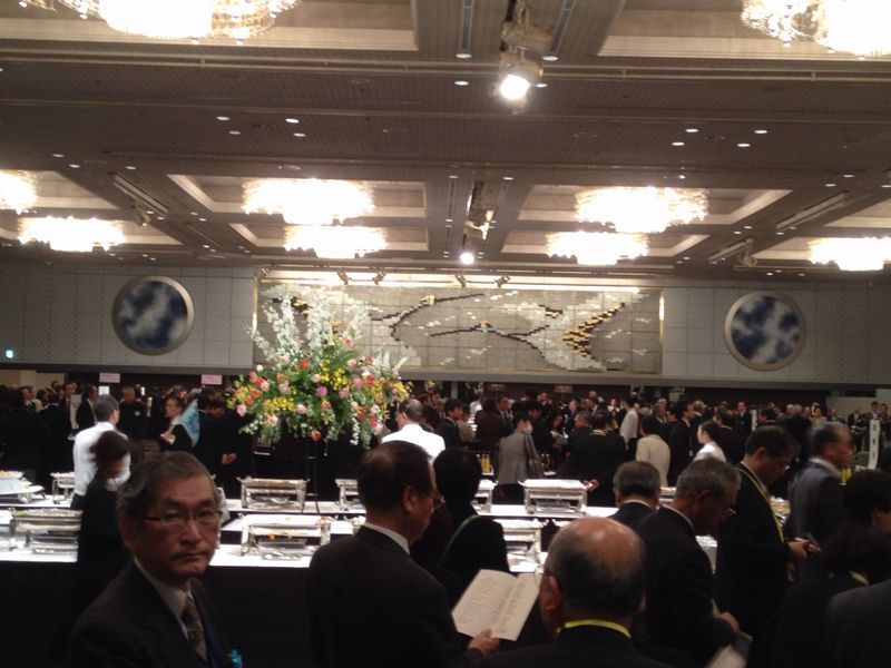 NHKホールから富士急行の貸切バスでホテルニューオータニへ移動。クロークでコートと荷物を預けるが、NHKホールからのバスがすべて到着するまで待機となる。私は3号車での移動となったが、学位記の受け取りをしている卒業生は時間がかかっているようで、13時30分の開会時刻になっても始まる様子はない。