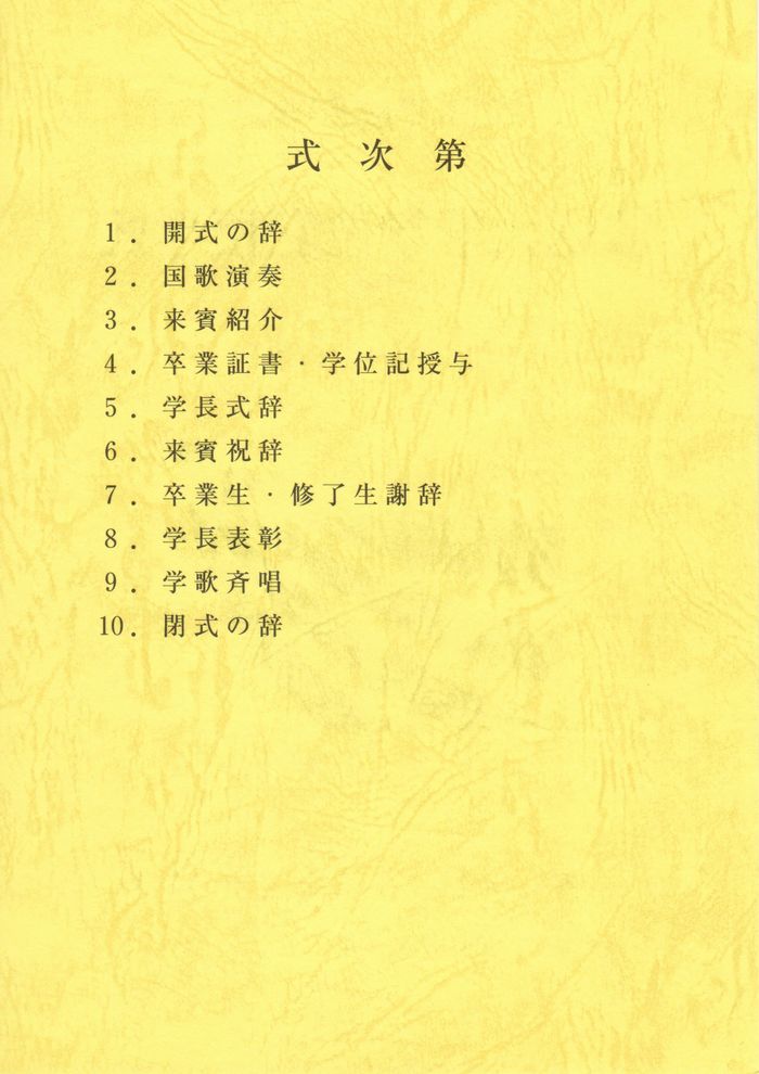 卒業生・修了生謝辞では、それぞれ修士課程・博士課程に進学する人が選ばれていた。向学心の高い学生が選ばれているようだ。