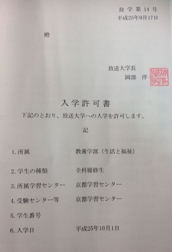 放送大学から平成26年度第2学期科目登録決定通知書が届いた。9月5日付の発送となっているが、京都に届いたのは9月8日である。科目登録決定通知書と称しているが、要は金融機関やコンビニエンスストアで使える払込取扱票と一体となった請求書である。今学期も8科目を登録したので請求額は88,000円となっている。