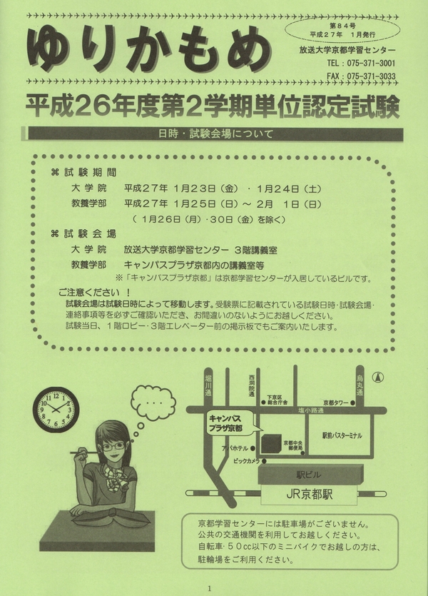 京都学習センターの発行する機関誌「ゆりかもめ」が届いた。京都学習センターでは、4月、7月、10月、1月の年4回「ゆりかもめ」を発行しており、今回で第84号となる。単位認定試験や京都学習センターで開始される定期講座や特別講義の案内が中心となる。定期講座や特別講義は、単位とは直接関係がないうえ、平日の昼間に開催されることが多いため、私は1度も出席したことはないが、時間を持て余しているシニア層には人気の講座であると聞いたことがある。