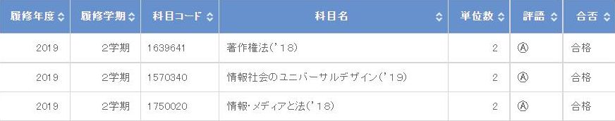 3科目6単位を無事に確保し、情報コースのスタートとしては幸先が良い。この調子で卒業要件を満たせると良いのであるが、相性の良い科目を先に履修してしまったため、これから先の単位を揃えるのは苦労するかもしれない。