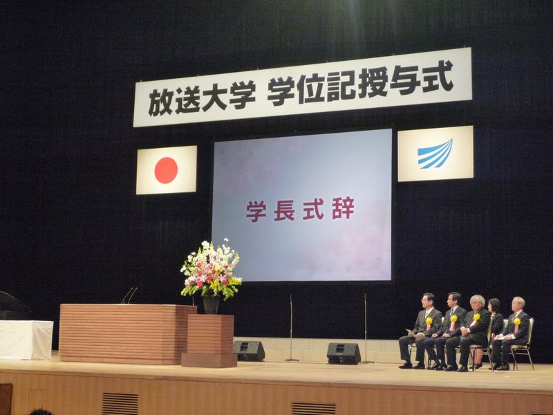 卒業生・修了生謝辞では、1994年に入学したという学生が登場した。1994年と言えば、私が最初の大学に入学した年でもある。22年越しの卒業とは恐れ入るが、実際は翌年に休学。復学したのは2011年とのことで、2011年も私が放送大学に最初に入学した年でもあり、少なからず縁がありそうな経歴の持ち主であった。