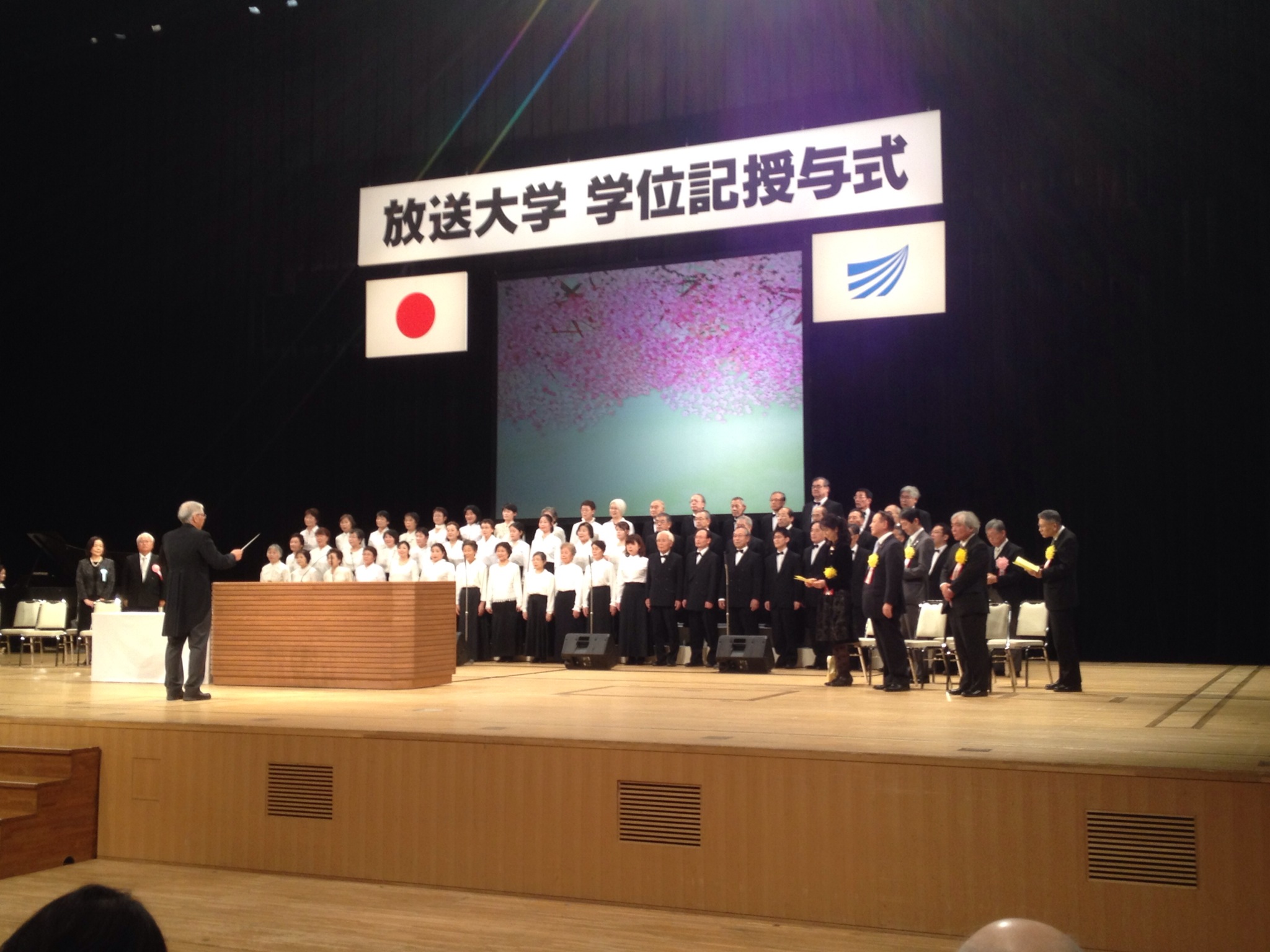 ラストは学歌斉唱。こちらは学歌演奏ではなく学歌斉唱となっている。放送大学神奈川学習センターの合唱団のコーラスに合わせての学歌斉唱を行い、学位授与式は終了した。