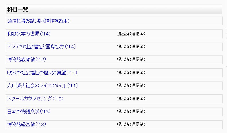 2014年度第1学期の通信指導問題をキャンパス・ネットワークから提出した。これまではマークシートの練習を兼ねてわざわざ郵送で提出していたのだが、消費税の増税で家計も厳しくなってきたので無駄な出費は極力抑えざるを得ない事情がある。
